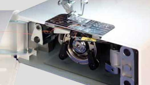 Easily prepare multiple bobbins for projects by winding each one on the built-in bobbin winder.