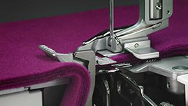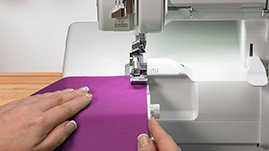 The Fabric Support System keeps stitches flat and balanced, no matter what speed, fabric or stitch you choose. The built-in stitch fingers actually move with the knife blade, adjusting the seam consecutively with the cutting width.
