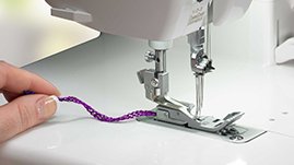 Raise the presser foot by simply moving the attachable lever with your knee. This leaves both of your hands free for extra control on detailed stitches.
