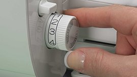 Stitch length can be easily adjusted on the Triumph using one dial. This dial includes an Automatic Rolled Hem setting that will retract the built-in stitch width finger for a rolled hem finish