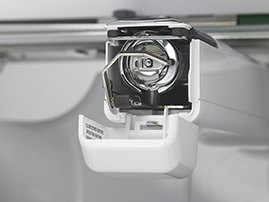 The convenient bobbin system with a front-loading, vertical hook means you can change bobbins without having to remove your embroidery hoop.