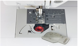 Simply drop your bobbin in the machine, pull your threads through the slot and let your machine do the rest.