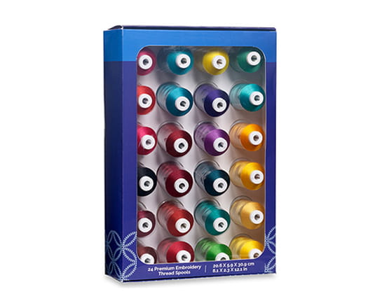 Get colorful with the Brother Trend Series Jewel Tone 24PC thread set! This vibrant 100% polyester embroidery thread set features 24 majestic, brilliant colors in 1100 yards. Durable and sturdy, the Jewel Tone kit is high-quality and is the perfect accessory for your Brother embroidery projects. Give as a gift or keep for yourself!