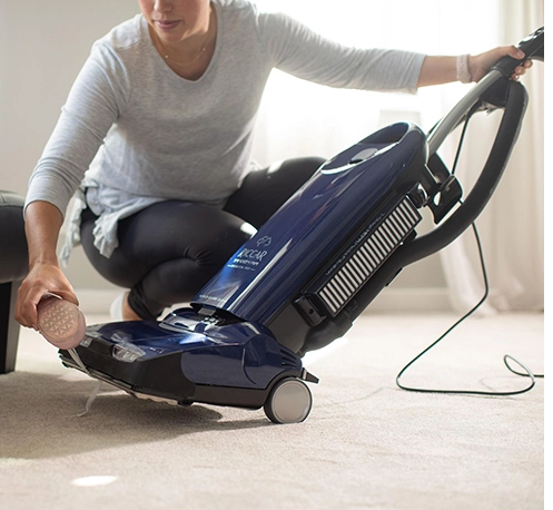 A Hall sensor stops the brushroll when it jams, protecting the belt from snapping. You also get lifetime belt protection. So it shouldn't break, but if it does, you're covered. A helpful indicator light will tell you when the bag is full and ready to be changed.