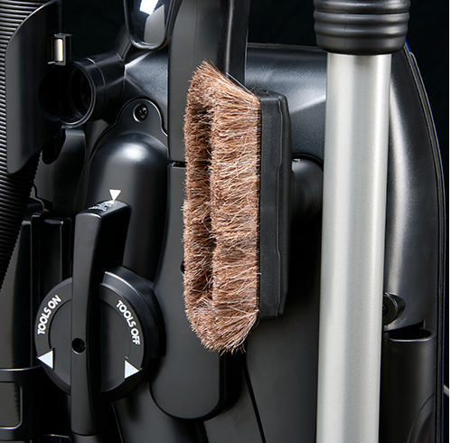 hose doesn’t topple the vacuum. Deluxe onboard tools are at-the-ready